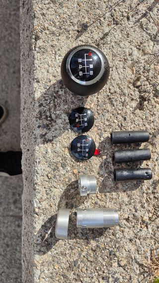Se vende pomo de marchas universal válido para diferentes grosores de varilla, sirve también para modelos que tengan gatillo de tirar hacía arriba para meter la marcha atrás, viene con 3 chapas adhesivas para colocar la que lleve tu coche (dependiendo del número de marchas que lleve o para donde se meta la marcha atrás se colocará una u otra)