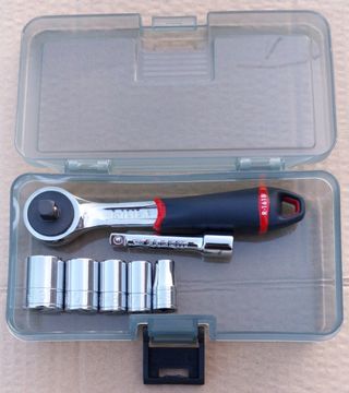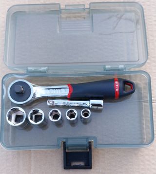 Carraca, alargadera (55mm.) y 5 vasaos hexagonales, medidas: 6,7,8,10,13 FACOM 1/4" en estuche nuevo. Envío aparte