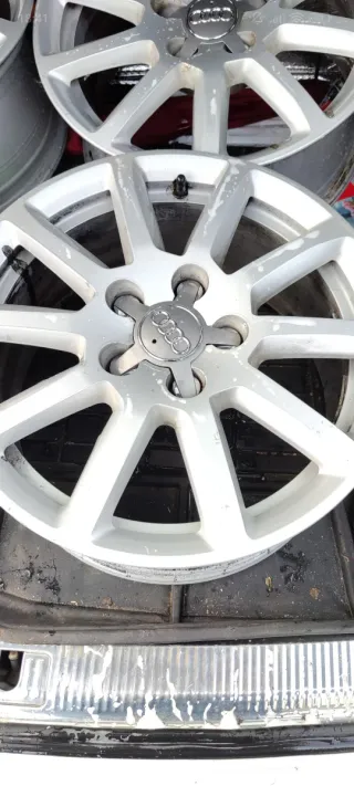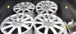 Juego de 4 llantas de aleación Audi de 16 pulgadas. - Diseño de radios. - Acabado plateado. - Logo de Audi en estrella en el centro. Son originales,han estado guardadas en el trastero varios años,no están descascarilladas ni nada,lo que se aprecia en las fotos es jabón de haberlas lavado un poco para meter en el maletero.