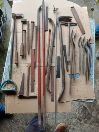 Lote de herramientas manuales para trabajos de albañilería y demolición. - Incluye punteros, palanquetas y cortafríos de diferentes tamaños. - Fabricadas en metal resistente.