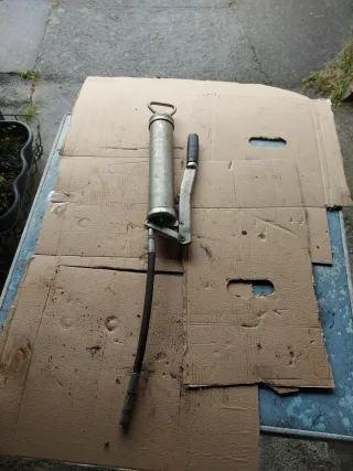 Herramienta manual para aplicar grasa. - Cuerpo metálico. - Manguera flexible. - Palanca de accionamiento.