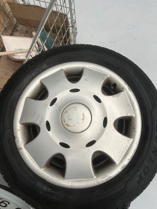 Juego de llantas para Seat Ibiza. El diseño es plateado y cuenta con un tapacubos central. Neumaticos nuevos !! 5x100 originales de chapa con tapacubos. - Llantas de aleación. - Tapacubos incluido. - Diseño de 5 radios dobles.