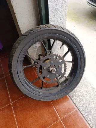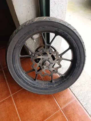Llanta supermotard de motor Hispania trasera con rueda de carretera continental disco floreado, catalina y pasador