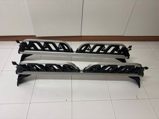 Portabicicletas de BMW. Accesorio original de BMW Alemania. Son de Aluminio, muy ligeros y resistentes, techo o remolque, tambien diponen de cerradura. Son realmente buenos Nuevos costaron mas de 250€, dispongo de cuatro unidades que se pueden usar simultaneamente. Tambien tengo las barras de techo BMW para el x3