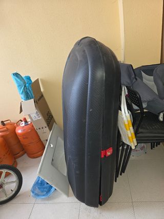 Cofre portaequipaje de color gris para el techo de un coche. Incluye cerradura y llave para asegurar la carga. - Color: Gris - Incluye cerradura y llave mide 1,90x70cm en perfecto estado