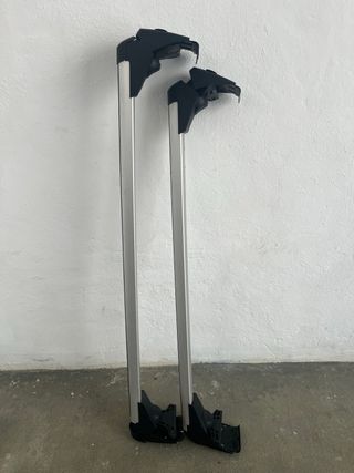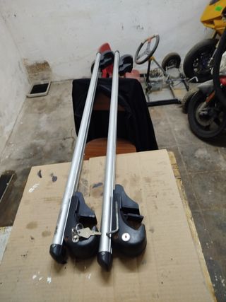 Juego de barras de techo portaequipajes en muy buen estado. - Incluye soportes y herramientas de montaje. - Diseño aerodinámico.