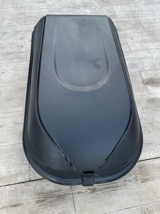 Baúl portaequipajes de techo para coche, modelo Evospace 400DX. - Color negro brillante. - Diseño aerodinámico. usado dos veces.. pero de estar guardado tiene alguna raya.. de ahí su precio