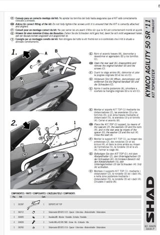 Fijación Shad para Kymco Agility 50 SR. - Incluye soporte y tornilleria. - Color negro, en buen estado. - Fácil instalación.