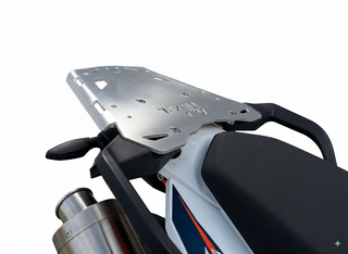 Portaequipajes para quienes buscan un soporte ligero y resistente. ✅ Diseño reforzado, robusto y sobredimensionado. ✅ Fabricada en aluminio de alta resistencia por corte láser con 4 puntos de fijación avellanados y con refuerzo inferior. 👉 Puedes elegir entre recibirlo solo o de añadir anclajes compatibles con baúles Givi Monokey Outback Trekker y Kappa. ✅ Puede instalarse con las asas originales y permite fijar bolsas o equipaje mediante cinchas gracias a sus múltiples ojales. Incluye todo lo necesario para su montaje. Se realizan envíos Se puede recoger en Lleida No Leer: KTM,Powerparts,portabultos,790,890,trail