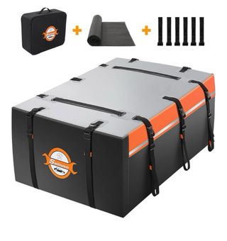 Cofre Techo Coche Impermeable y Plegable con 6 Correas Anchas, para Todos Los Vehículos con/Sin Portaequipajes (medidas en una de las fotos)