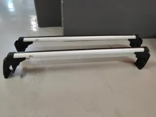 Vendo barras portaequipajes para coche, en muy buen estado. Son dos barras de aluminio, con una estética impecable. - Ideales para transportar equipaje en el techo del coche. - Fácil instalación. - Material: Aluminio.