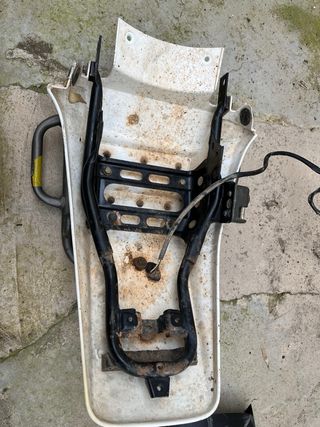 Parrilla portaequipajes para Suzuki DR 650. Fabricada en metal resistente. Tiene una fractura pero es completamente funcional. Solo se vende la parrilla, no plástico del colín.
