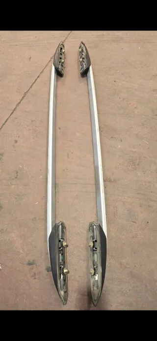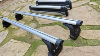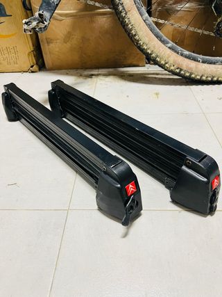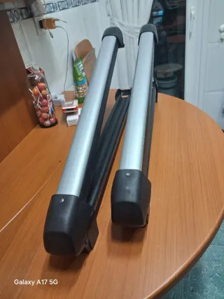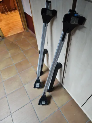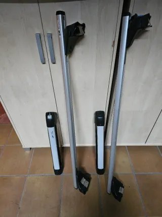 Conjunto de barras de techo de aluminio y portaesquís de la marca Thule, en muy buen estado. Material original, robusto y fiable. Se venden juntos o por separado (90 € las barras y 60 € los portaesquís). Los soportes de las barras son específicos para Mazda (venían montados en un modelo CX-7), pero las barras en sí no son exclusivas de Mazda y pueden reutilizarse en otros coches cambiando los adaptadores correspondientes. Los portaesquís se pueden acoplar a muchos modelos de barras Thule y a otras marcas compatibles según el sistema de fijación. Barras: 116 cm Portaesquís: 77 cm