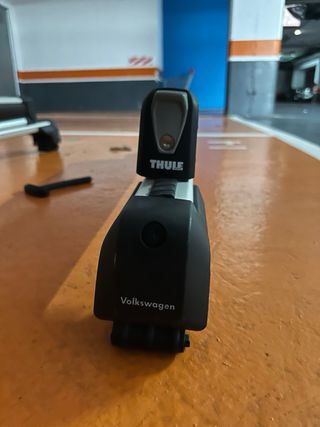 Juego de bacas y portaesquís para Volkswagen Tiguan 2 (2019 en adelante) . Barras ORIGINALES con un año de uso, El portaesquís THULE tiene capacidad para 6 pares. Único desperfecto una de las cerraduras del portaskis funciona mal pero cierra ya que se lleva usando así tiempo. Se enviarían en su caja original de las bacas. Opción de venta solo de barras por 200€