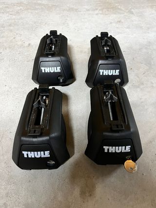 Vendo portaesquís Thule en buen estado. Incluye barras de techo y varios juegos de fijaciones. Es un juego completo, listo para instalar. - Perfecto para transportar esquís. - Incluye 2 barras transversales Thule. - Se incluyen todas las fijaciones necesarias para la instalación. - Fácil montaje.