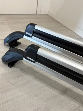 Se venden dos portaesquís Thule. Están en muy buen estado, apenas usados. - Se incluyen dos barras portaesquís Thule. - Sistema de fijación incluido. - Llaves incluidas.