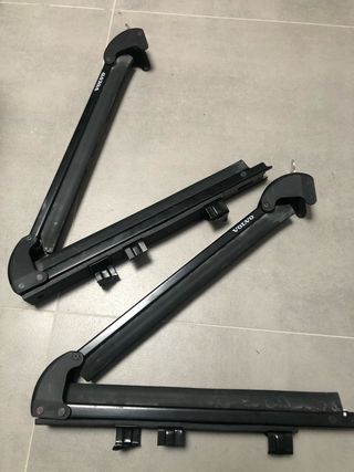 Se vende portaesquís para Volvo. Están en buen estado, con algunas marcas de uso. - Se incluyen dos barras portaesquís. - Ideales para transportar esquís de forma segura. - Fáciles de instalar. Se vende sin llaves, ya que se perdieron. falta una tapita de plastico como se aprecia en las fotos.