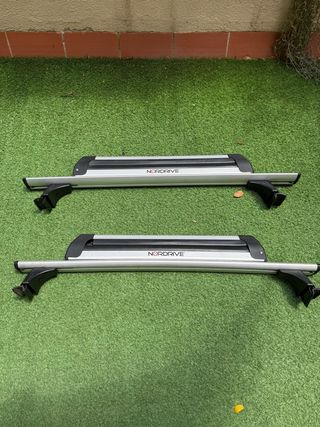 Se venden dos barras portaequipajes de la marca Nordrive, en buen estado. Son ideales para transportar esquís o tablas de snowboard. - Fabricadas en aluminio. - Diseño elegante y moderno. - Fácil instalación.