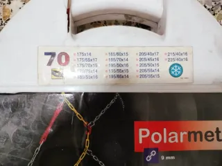 Cadenas de nieve Polarmet para coche, modelo 70. - Cadenas de 9 mm. - Incluye funda de transporte. - Compatibles con varios tamaños de neumático (ver foto).