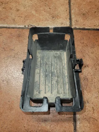 Caja de herramientas para Derbi Variant. Pieza de plástico negro. En perfecto estado. - Diseño rectangular. - Bordes reforzados. - Compartimento interior con guías.