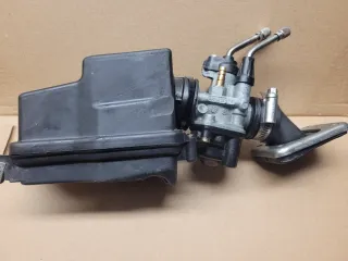 Carburador, toma de admisión y caja de filtro de aire para Derbi Variant Start 5, todo limpio y en perfecto estado.