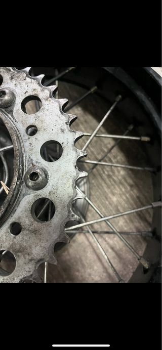 Juego de llantas para moto estilo supermotard. Montadas en una ktm - Llantas de radios. - Incluyen discos de freno.