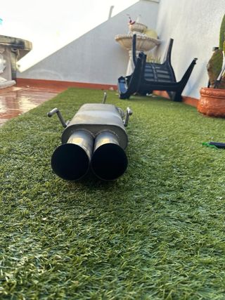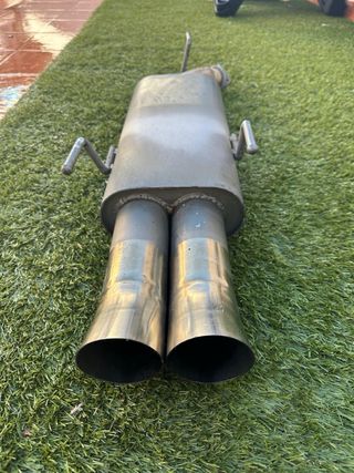 Silenciador trasero para coche con doble salida de escape. - Doble tubo de escape. - Diseño deportivo. Muy poco uso lo tenía montado en un Opel 2002 medidas : Salida 2x76mm valido para 1.4 / 1.6 /1.7 / 1.8 / 2.0 /2.2 ...