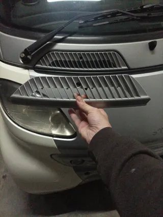 Rejilla frontal derecha para Smart Fortwo modelo 450. Pieza de recambio para el frontal del vehículo. - Diseño de lamas plateadas. - Material: Plástico.