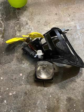 Conjunto de accesorios para Honda TRX 450 R - Protector de manillar amarillo. - Maneta de embrague con funda roja. - Maneta de freno. - Faro delantero. (roto) - Protector de plástico negro.
