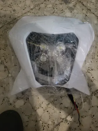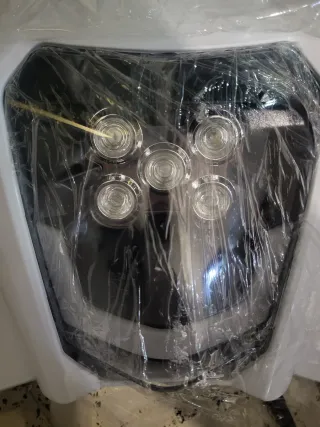 Faro delantero universal con diseño moderno, apto para motos y quads. Su carcasa es de color blanco y cuenta con múltiples luces LED para una iluminación potente. - Diseño universal. - Carcasa blanca. - Múltiples luces LED.