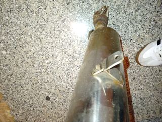 Escape de acero inoxidable usado, compatible con quads. - Material: Acero inoxidable. - Uso: Previamente instalado en un quad.
