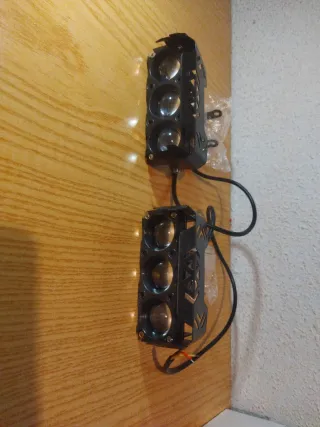 4 focos LED con lupa y carcasa negra metálica. Perfectos para 4x4 patinetes motos quad camiones gruas etc Sin estrenar. . . . . . Todoterreno camion grua patin moto