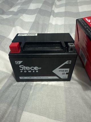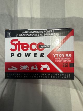 Batería de arranque Steco Power para motocicleta, moto de agua, quad y scooter. La compre para mi moto pero no entra por dimensiones, asique esta sin usar. - Modelo: YTX9-BS - Voltaje: 12V - Capacidad: 8AH - Más potencia de arranque.