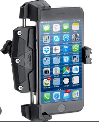 Pinza universal porta smartphone para la fijación a la moto,scooter, bicicletas y quad.Con dimensiones: Mínimo 112x52mm-Máximo 148x75mm. Materiales de alta resistencia química y mecánica,partes metálicas en acero inoxidable y aluminio anonizado.Partes de plástico de tecnopolimeros con un tecnoelastomero para aumentar la longevidad de cada componente y agarre de las zonas de apoyo. Referencia: S920M *Somos concesionario, taller, recambios y boutique oficial de las marcas: PIAGGIO / VESPA / APRILIA / MOTO GUZZI.