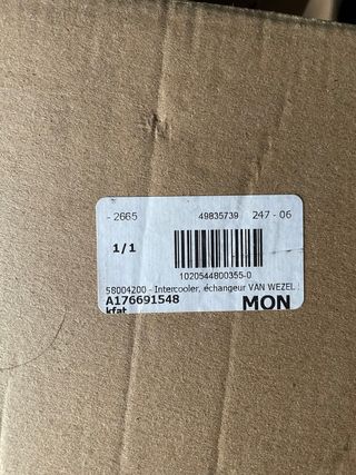 Radiador de admisión intercooler de la marca Van Wezel. SIN USO - Referencia: 58004200 - Código: A176691548
