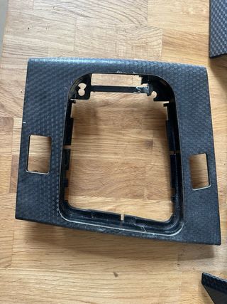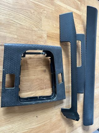 Conjunto de molduras de fibra de carbono para BMW E46. - Diseño deportivo y ligero. - Acabado en patrón de tejido de carbono. - Piezas para consola central y salpicadero. - son OEM provienen de un 330 ci pack M prerestyling - la del cambio tiene repracion, la de encima la radio tiene un desperfecto por pegamento pegado como se ve en la foto. - tienen alguna pequeña rotura en la parte interior como se puede ver en las fotos pero se pueden montar
