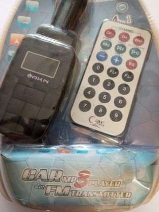 Reproductor Car Mp3 que integra además un emisor de radio FM y multiconexion (USB/SD/Line In) Ideal para poder enviar música a la radio del coche sin cables . Incluye mando a distancia lector de tarjetas SD de hasta 32 GB, y conexión USB para escuchar música desde un pendrive. Sin usar, totalmente a estrenar.