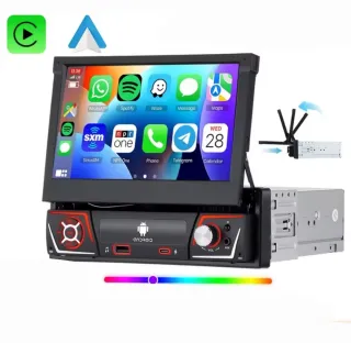 Radio para coche con pantalla extraíble y sistema Android. Pantalla en resolución HD con sistema de extracción manual. - Pantalla táctil. - Diseño moderno con iluminación LED. - Conexiones USB y AUX. Lleva Bluetooth, USB, WiFi, GPS, YouTube, Playstore. Conexión Carplay inalámbrica y Android Auto también inalámbrico. Totalmente nueva