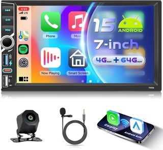 4G+64G Android 15 Radio Coche Bluetooth con Carplay Android Auto Inalámbrico, Autoradio 2 DIN con IPS HD Pantalla Táctil 7 Pulgadas Soporte Bluetooth Radio FM RDS GPS Wi-Fi USB/Tipo-C Cámara 690 - Pantalla de 7 pulgadas. - Incluye cámara trasera. - Incluye micrófono.