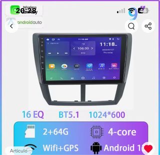 Radio para coche con pantalla táctil y sistema Android i Apple. Para coche subaru Forester. - Pantalla de 1024*600. - 16 EQ. - BT 5.1. - 2+64G de almacenamiento. - Wifi y GPS integrados. - Compatible con Carplay. - Procesador 4-core.