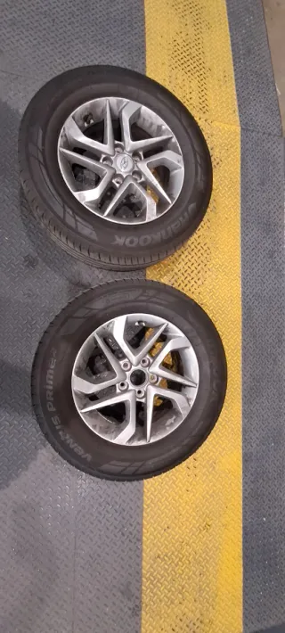 Juego de 4 llantas Hyundai R16 Se venden llantas con neumáticos semi nuevos en perfecto estado son de un Hyundai Santa Fe 225-70-16 se vende conjunto de las 4 llantas con los neumáticos. Precio negociable - Llantas de aleación. - Diseño de 5 radios.