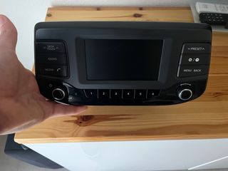 Radio original Hyundai i10 (2019 aprox.) La vendo porque la cambié por una táctil y con bluetooth Marca: Mobis / Hyundai Pantalla monocromo, sin Bluetooth, sin táctil FM / AM / CD / MP3 Incluido el marco frontal Buen estado general, funciona perfectamente y sin cableado/conector Negocio precio si interesa Entrega en mano en Tenerife, fuera los gastos no van incluidos en el precio