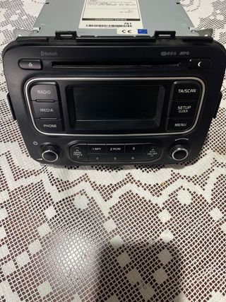 Radio de coche para Kia Sorento XM del año 2012. Compatible con CD y MP3. Proviene de vehiculo nuevo, al que se le sustituyo, se cambio por modelo con navegador y camara trasera, a su entrega. La guarde de repuesto, esta completamente nueva y funcionando. Totalmente original. - Botones FM, AM, CD/AUX. - Botones TA, INFO, SETUP. - Teclado numérico 1-6. - Botones SEEK, TRACK, AST, MUTE, PTY, FOLDER.