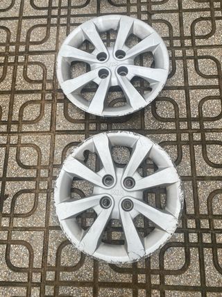 Se venden tapacubos originales de la marca Kia. Son de color plateado y tienen un diseño de 10 radios. - Tapacubos originales Kia. - Color plateado. - Diseño de 10 radios.
