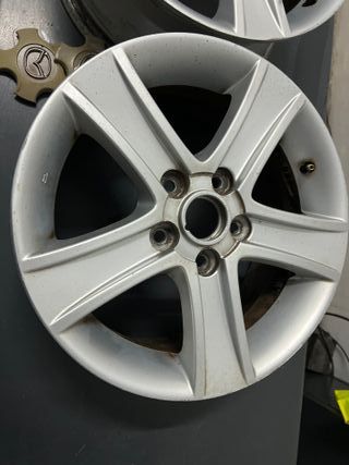 Llantas de aleación de 17 pulgadas para Mazda. 5x114,3 Tengo las 4 1 como se ve en las fotos tiene un desperfecto en una de las tuercas. Habria que limarla. Luego las demas estan bien, con roses de aparcamiento. - Diseño deportivo de 5 radios. - Logo de Mazda en el centro. - Neumáticos 225/45R17 94V (Para cambiar, estan muy mal)