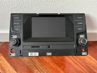 Radio original para Volkswagen Golf 6. Este dispositivo cuenta con una pantalla LCD y varios botones de control para acceder a diferentes funciones. - Botones: SOUND, EJECT, RADIO, MEDIA, TP, MENU, SEEK/TRACK, FOLDER. - Diseño frontal en color negro.
