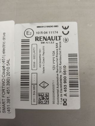 🆔 Referencia: 3879659 ⚙️ Pieza: RADIO / CD 🚗 Marca: SMART 📄 Modelo: FORFOUR (01.2004->) 🏷️ Versión: 1.5 CDI 70KW (454.001) [1,5 LTR. - 70 KW CDI CAT] 🔩 Motor: OM639939 - #PROV#