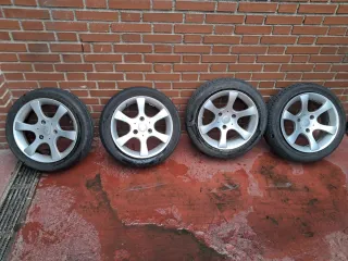 Juego de 4 llantas negras para Smart. - Diseño de 7 radios. - Centro con logo a color. - Neumáticos delanteros para cambiar, neumáticos traseros con dos años.