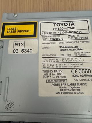 Radio original para Toyota Auris. El reproductor de CD da un error! El modo radio va perfecto.