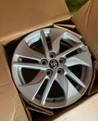 Juego de llantas de aleación Toyota de 16 pulgadas. - Diseño de 5 radios. - Acabado plateado. - Neumáticos incluidos delanteros 40% y traseros al 80% - Emblema Toyota no incluido